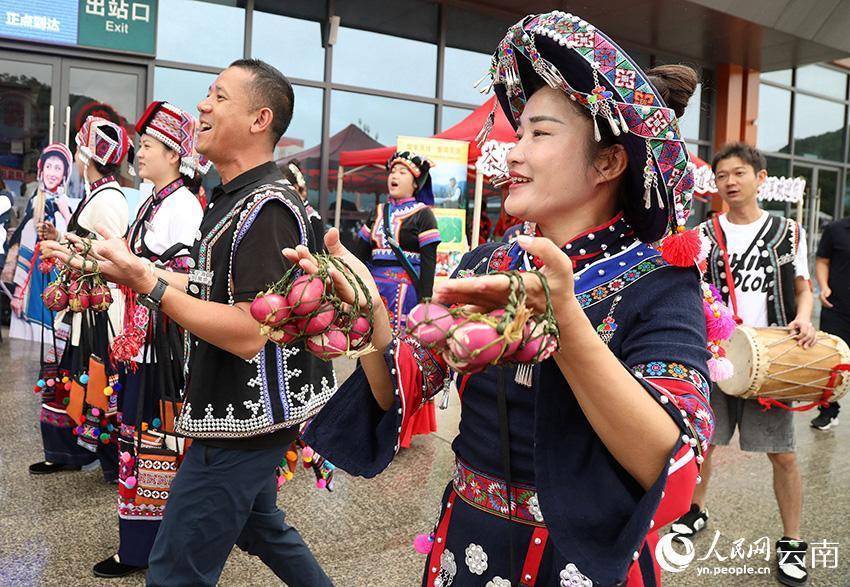 “远方来的客人啊,欢迎你到普洱茶乡来……”活动现场,青年们唱起淳朴动人的敬茶歌,敲响欢快的锣鼓,并向游客赠送哈尼红蛋、民族香包等寓意吉祥的纪念品,生动展现“茶源道始 盟誓之城”宁洱的独特魅力。不少游客刚出站便被这热烈氛围感染,纷纷举起手机记录美好瞬间。
